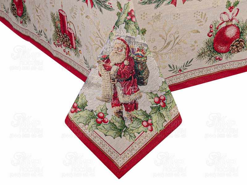 Скатерть с люрексом от испанского производителя Lefard Spain изготовлена из гобелена. Зимние святки приносят в наши дома атмосферу радостных чудес и доброй новогодней сказки. Подчеркнуть красоту этих праздников поможет красочный гобеленовый текстиль с рисунком в рождественской стилистике. Категорически не допускается применение отбеливателя, смягчителя ткани или химическая чистка. Гладить скатерти после стирки следует с обратной стороны.