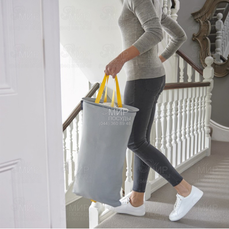 Корзина для белья от английского производителя Joseph Joseph изготовлена из пластика и хлопка. Классический дизайн и современный декор сочетаются практически с любым стилевым оформлением. Продуманная конструкция со съёмной пластиковой крышкой позволяет использовать бак как для небольших предметов, так и для комплектов постельного белья. С помощью съемного хлопчатобумажного мешка чрезвычайно удобно переносить белье в стиралку.