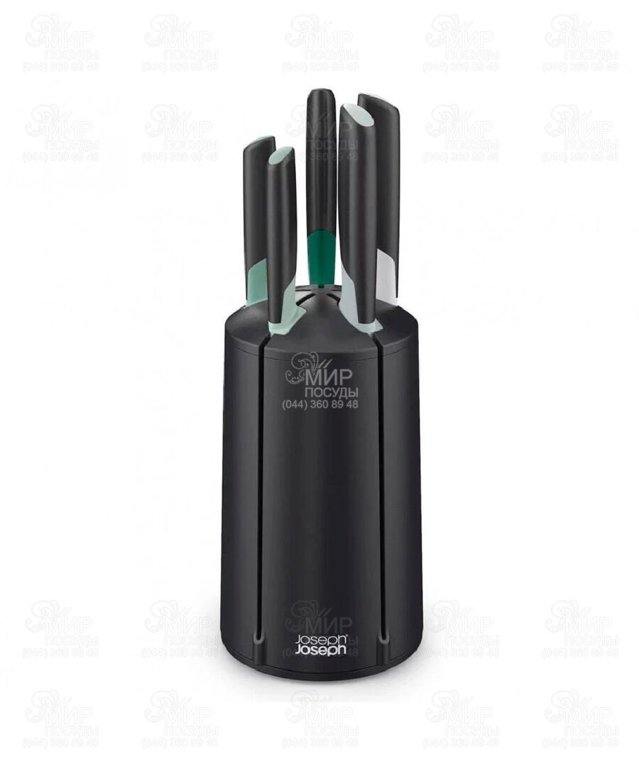 Набор ножей от английского производителя Joseph Joseph создан для современной и функциональной кухни, где всё находится под рукой. Включает в себя пять ножей различной классификации. Лезвия изготовлены из нержавеющей стали и легко чистятся. Вращающийся блок имеет нескользящие базы в ножевых прорезях для безопасного хранения.