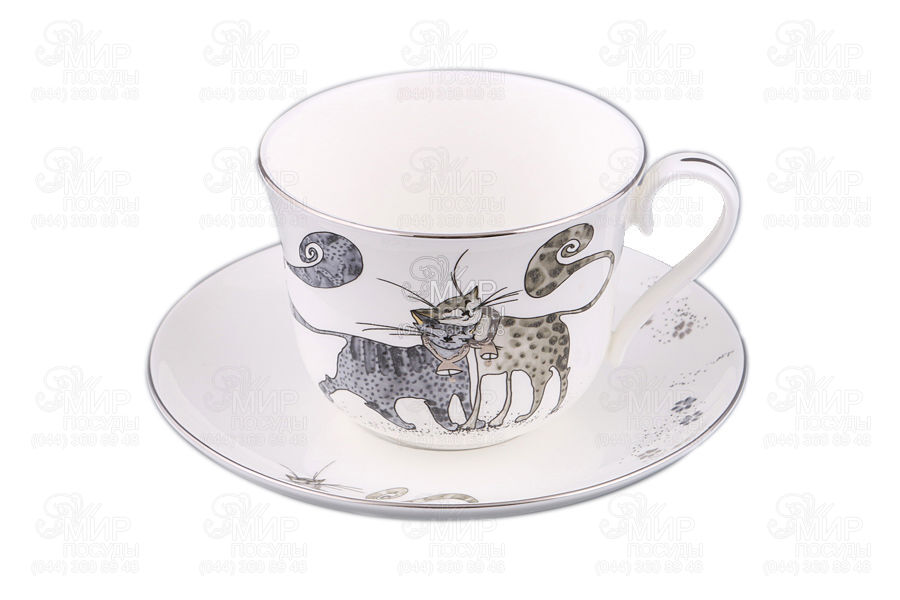 Мир посуды - Столовая посуда - Чашки - Чайные чашки - Чашка для чая с блюдцем Весёлые коты 420мл 264-531