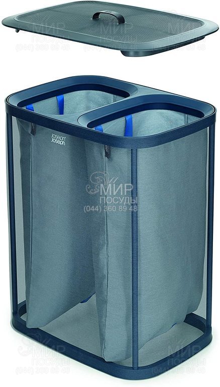 Корзина для белья от английского производителя Joseph Joseph изготовлена из пластика и хлопка. Классический дизайн и современный декор сочетаются практически с любым стилевым оформлением. Продуманная конструкция со съёмной пластиковой крышкой позволяет использовать бак как для небольших предметов, так и для комплектов постельного белья. С помощью съемного хлопчатобумажного мешка чрезвычайно удобно переносить белье в стиралку.