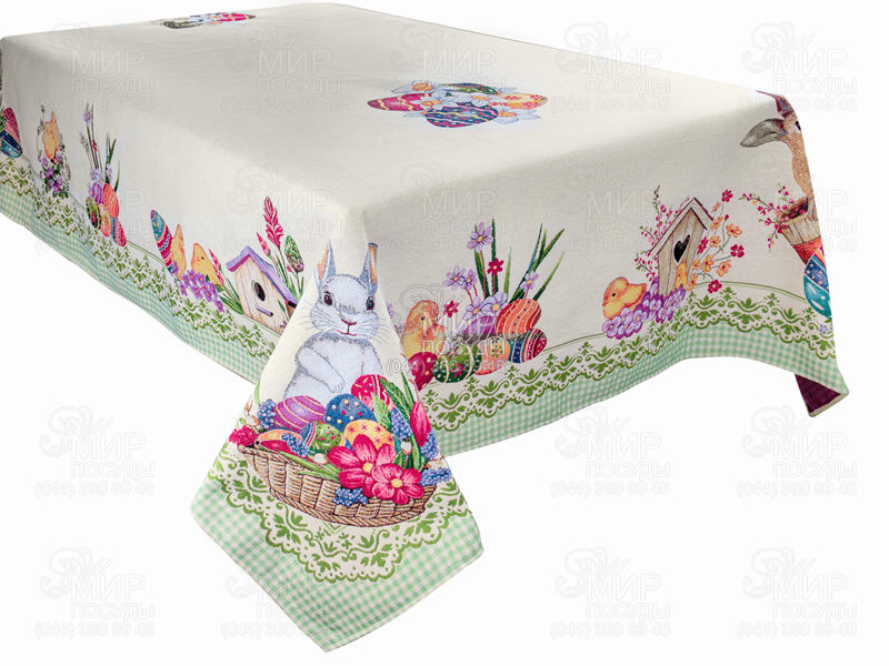Скатерть от испанского производителя Lefard Spain изготовлена из практичной прочной ткани. Благодаря яркому, красочному раскрасу идеально подойдет к празднику Пасха. Категорически не допускается применение отбеливателя, смягчителя ткани или химическая чистка. Гладить скатерти после стирки следует с обратной стороны.
