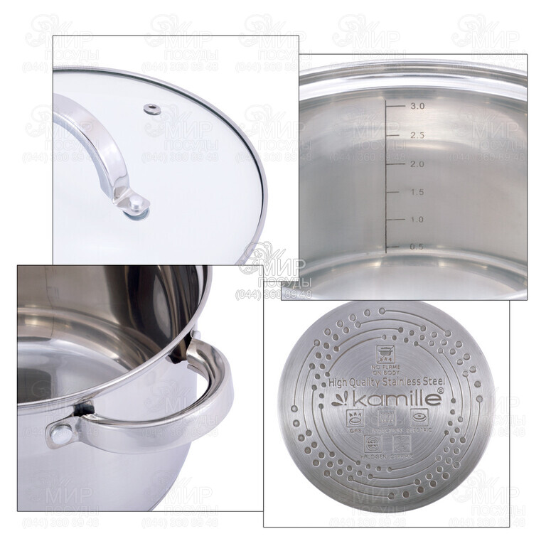 Набор кастрюль Kamille – это вкусное и здоровое приготовление пищи. Кастрюли выполнены из качественной нержавеющей стали с применением современных технологий производства. Такие кастрюли обладают превосходным внешним видом, оснащены 5-слойным капсульным дном и отличаются высокой прочностью и долговечностью в использовании.