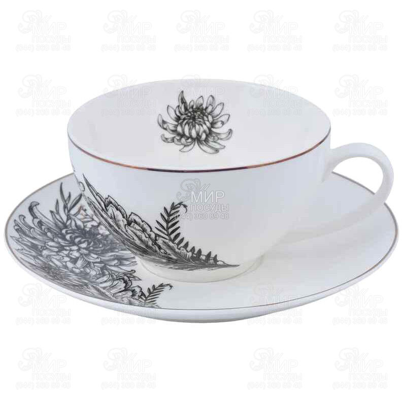 Мир посуды - Столовая посуда - Чашки - Чайные чашки - Чашка для чая с блюдцем Charm Floral Black 410мл A0530-CS410-C