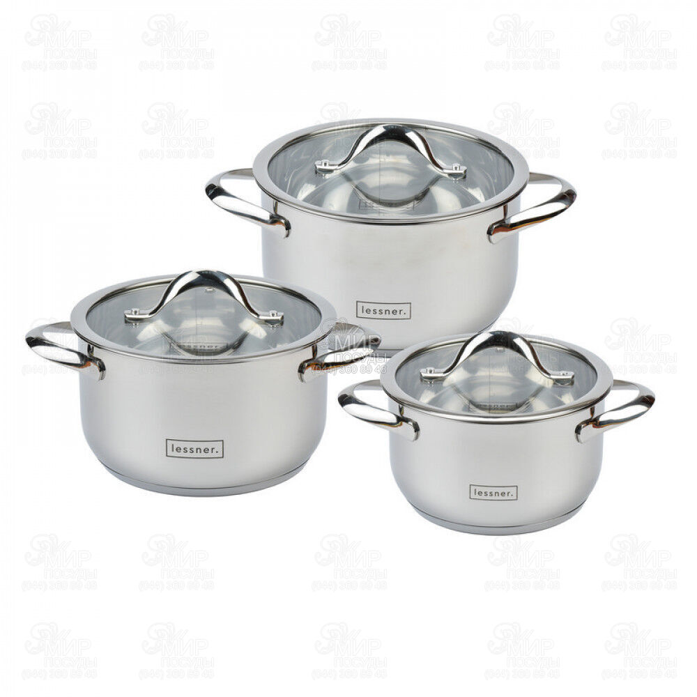 Набор посуды Lessner изготовлен из высококачественной коррозионностойкой стали. Емкости идеальны для приготовления здоровой пищи с минимальным количеством жира, что обеспечивает снижение потери полезных витаминов, минеральных веществ и сохраняет аромат готовящихся блюд. Крышки, выполнены из термостойкого стекла, позволят вам следить за процессом приготовления пищи. Крышки оснащены металлическим ободом и отверстием для выпуска пара.