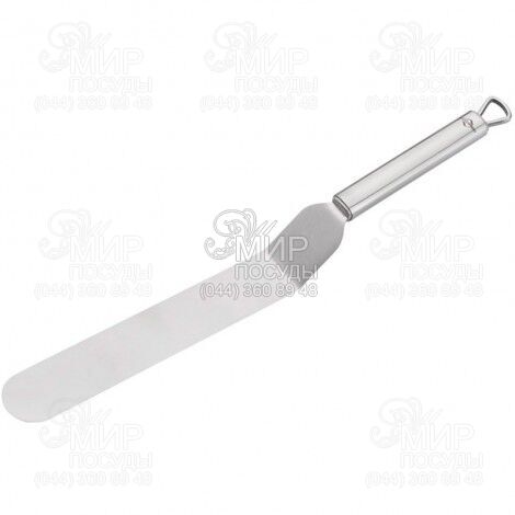 Лопатка для кондитерських виробів виготовлена із якісної нержавіючої сталі. Має ергономічну форму, гачок для підвішування та ідеальна для любителів кондитерських виробів та солодощів. Може використовуватись для рівномірного нанесення глазурі на торт. А також для розрізання торта та перенесення його на тарілки.