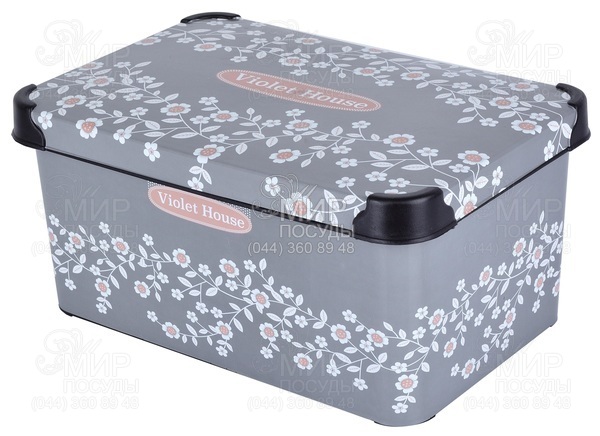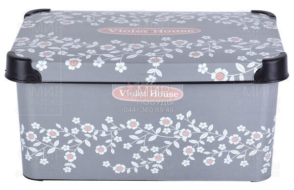 Світ посуду - Домашній інтер'єр - Організатори для ванної - Кошики для ванної - Кошик з кришкою 16,5х23,5х35см 0647 Antrasit Flower 10л