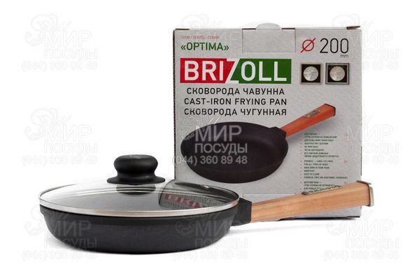Чавунна сковорода українського виробництва від компанії Brizoll - чудовий вибір для будь-якої господині. Як відомо, такий посуд надзвичайно міцний, не боїться перегріву, допускає використання металевих лопаток і ножів, а тому служить багато років. Чавун є екологічно чистим матеріалом, і посуд з нього є абсолютно безпечним для здоров'я. Висока теплопровідність забезпечує швидке нагрівання посуду та тривале збереження тепла, завдяки чому Ви заощаджуєте на енергоносіях. Також чавунний посуд підходить для будь-яких типів плит, включаючи індукційні. Посуд серії Оптима - найбільш популярний завдяки ідеальному поєднанню фірмового стилю та ціни. Сковороди серії оснащені дерев'яними ручками, міцно прикріпленими до корпусу посуду. Шліфована поверхня приємна на дотик. Ручка не нагрівається, має пластинку з логотипом компанії. При необхідності допускається мити в посудомийній машині.