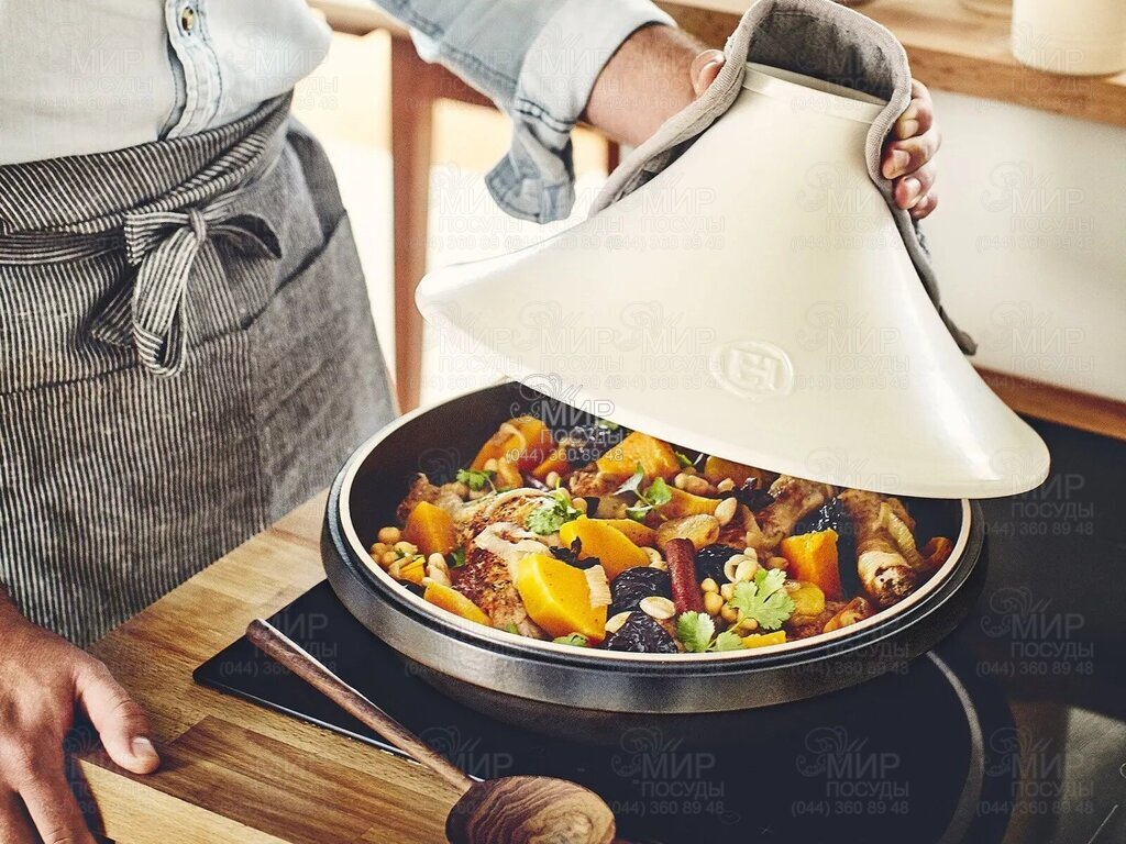 Таджин з кришкою Delight від французького виробника Emile Henry виготовлений із жаростійкої кераміки. Має ергономічну форму і укомплектований кришкою. Витримує температуру до +500°. Підійде для приготування запіканок, страв з м'яса та овочів, також можна використовувати для сервірування столу. Покритий унікальною високоміцною глазур'ю, стійкою до подряпин та зовнішньої дії, що дозволяє більше не бояться пошкодити поверхню столовими приладами, у тому числі гострим ножем або металевою лопаткою. При виготовленні виробу використовувалися виключно натуральні матеріали, завдяки чому міцна, вогнетривка поверхня зберігає свій колір, а приготовлена в ній їжа – природний смак та аромат. Зовнішній вигляд форми, розроблений разом з відомим дизайнером Веронік Маїрі, дозволить насолоджуватися процесом приготування улюблених страв. Підходить для використання в духовці та мікрохвильовій печі, а також для миття у посудомийній машині.