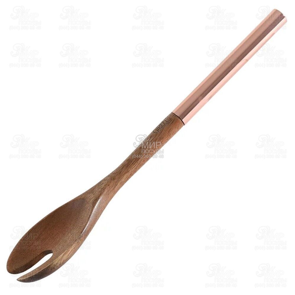 Вилка для салату Gipfel виготовлена з акації, ручка зроблена з нержавіючої сталі мідного кольору. Не впливає на смак чи запах їжі.