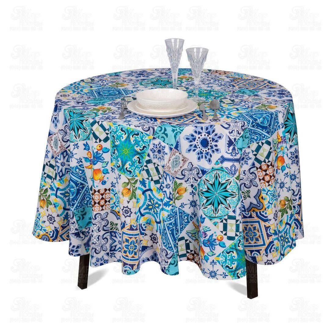 Світ посуду - Домашній інтер'єр - Домашній текстиль - Скатертини - Скатертина з тефлоновим покриттям Азулежу 220см MajoSaALTeMantel-D220DAC