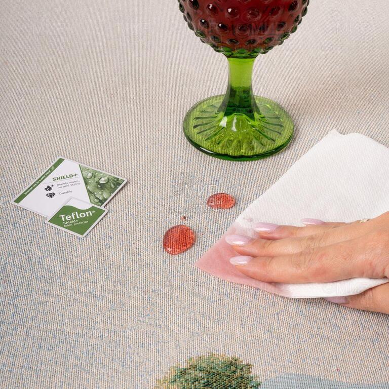 Скатертина Український пейзаж від Villa Grazia Premium це витвір мистецтва, що вражає своєю красою та національним колоритом. На цій скатертині ви знайдете великі деталізовані зображення квітучих соняшників, маків і ромашок. Ця скатертина не тільки вражає своєю витонченістю, а й викликає почуття гордості за красу України. Виготовлена із високоякісного матеріалу, скатертина дуже міцна і довговічна. Її насичені кольори та реалістичні деталі роблять цей гобелен чудовим доповненням до класичного або кантрі інтер'єру. Тефлонова просочення не дозволяє рідині проникати в тканину, якщо ви розлили напій - швидко промокніть краплі серветкою і від них не залишиться жодного сліду.