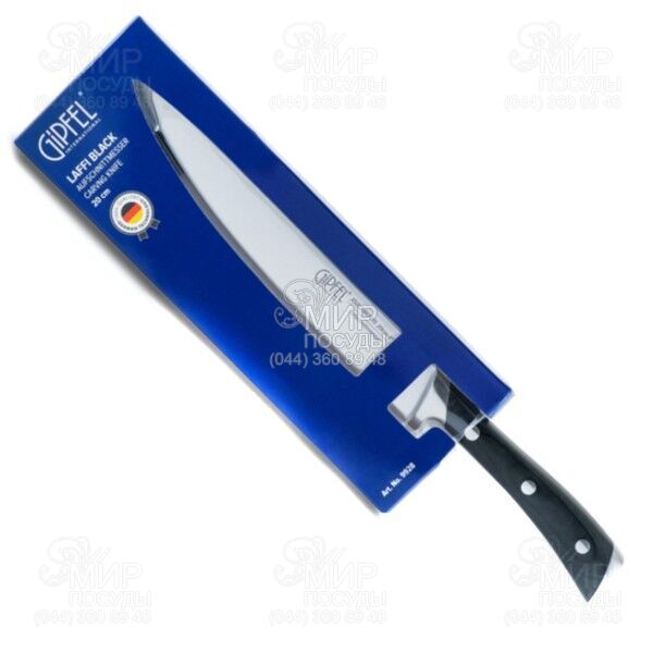 Ножі серії Laffi Black від німецького виробника Gipfel відрізняються від інших насамперед матеріалом леза, яким є сталь марки X50CrMoV15. Вона є відмінним поєднанням гостроти, гнучкості та міцності, тобто саме тим, чим має виділятися ідеальний кухонний ніж. Додайте до цього зручну рукоятку, що не вислизає під час різання, і ви отримаєте справжні професійні ножі, якими тепер можна укомплектувати вашу кухню.