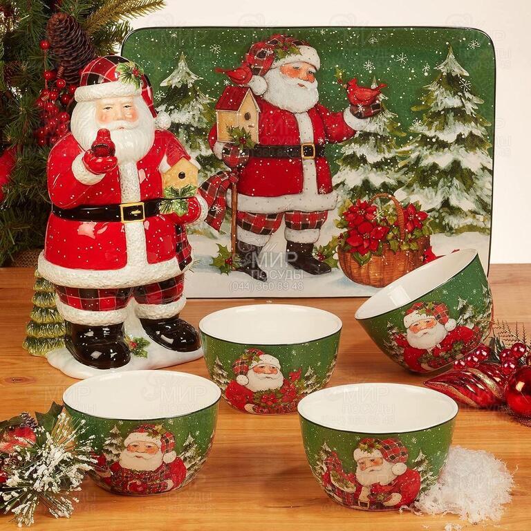 Світ посуду - Кухонний посуд - Ємності для продуктів - Ємності для печива - Бісквітник Різдвяний будиночок Дід Мороз 1,8л 29038