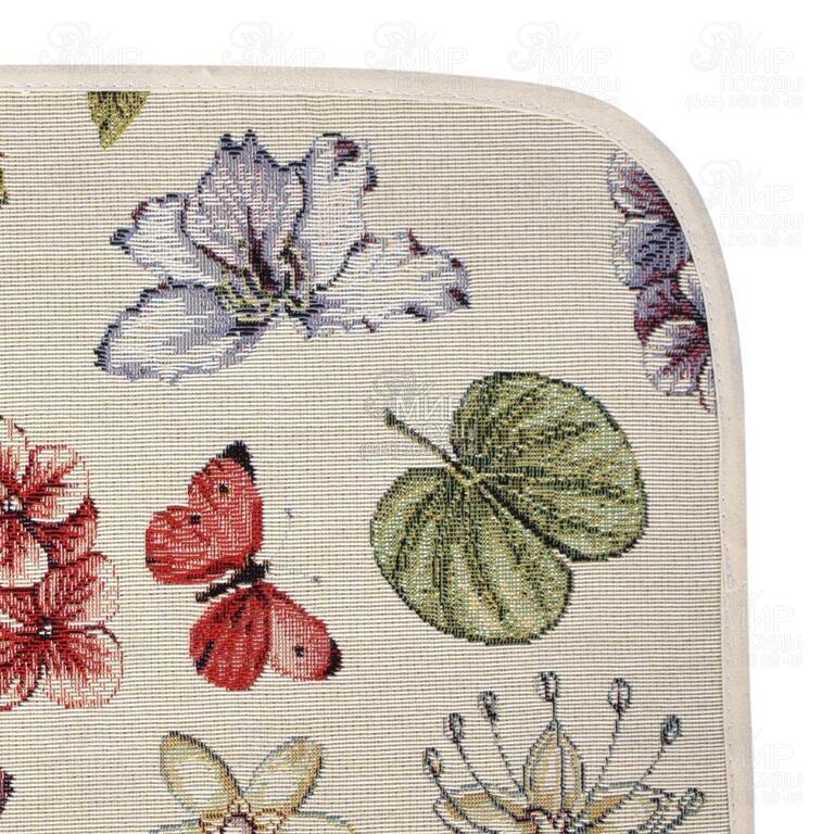 Дивовижна барвиста галявина з метеликами, що пурхають серед квітів, стала художньою темою для прикраси симпатичного виробу з нашої брендової колекції. Серветка якісного та красивого гобелену – це елітний декор для створення ексклюзивних сервірувань. Палітра чарівної картини, яка виткана з тисяч ниток, містить безліч яскравих відтінків, які ідеально гармонують зі світло-бежевою основою малюнка. Фарби візерунка та рівна форма полотна анітрохи не страждають від частих прань. Красива і практична серветка може стати приємним символічним презентом, а в комплекті зі скатертиною та раннером з цієї колекції – розкішним подарунком, який радуватиме своїх власників довгі роки.