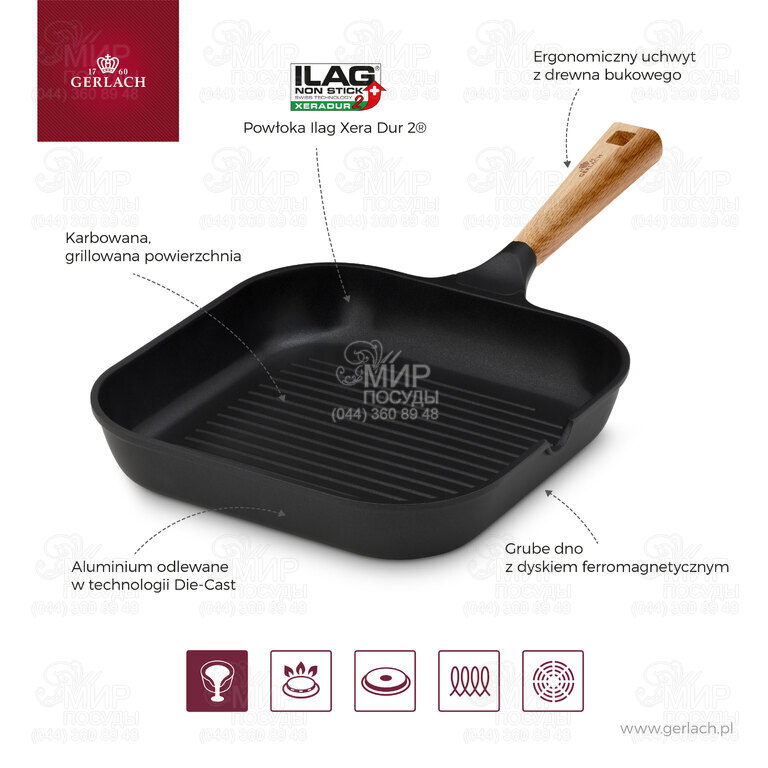 Сковороди лінії Natur від польського виробника Gerlach з керамічним покриттям створені із любові до природи, поєднуючи найвищу якість із комфортом використання. Сучасний дизайн з елементами з деревини бука – це унікальне та самобутнє поєднання, яке зробить зовнішній вигляд кухонного інтер'єру привабливішим. Лінія Natur призначена для людей, які хочуть вести здоровий спосіб життя, заснований на низькокалорійній дієті, що складається з ніжно обсмаженої риби, барвистих тушкованих овочів і ароматних трав.