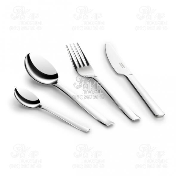 Набір столових приборів від чеського виробника Tescoma зроблений з міцної і якісної сталі, яка навіть при активному користуванні не втрачає блиск, має гладке яскраве полірування.
