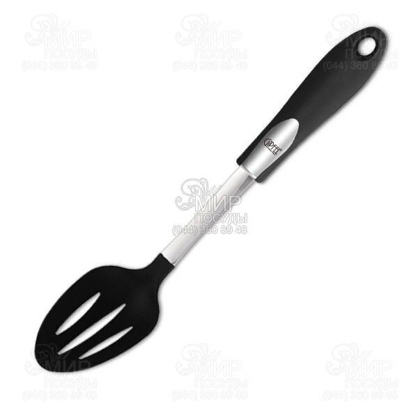 Ложка сервірувальна Orbit від Gipfel виготовлена з нейлону, сталі та зручною пластиковою чорною ручкою на кінці якої є отвір для підвішування.