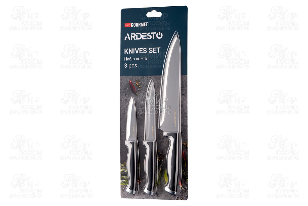 Набір ножів Gemini Gourmet від Ardesto виготовлений із нержавіючої сталі 3CR13.