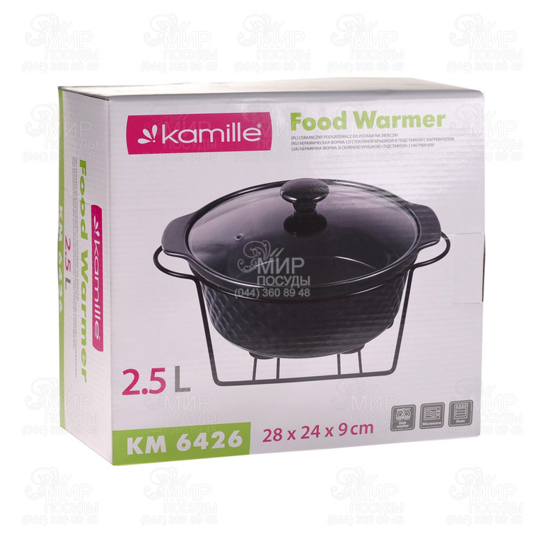 Керамічний марміт Kamille - відмінний пристрій для подачі гарячих страв. Виготовлений із високоякісних матеріалів із застосуванням сучасних технологій виробництва. Керамічна форма з кришкою підходить для використання в духових шафах та мікрохвильових печах, а в комплекті з нею йде зручна металева підставка з свічником для підігріву страв. Такий керамічний марміт з підставкою має привабливий зовнішній вигляд і дуже зручний у використанні, завдяки чому він неодмінно прикрасить Ваш святковий стіл.