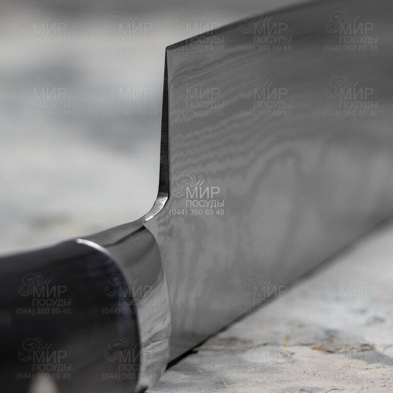 Японський ніж Damascus від Satake виготовлений із дамаської сталі та чорною рукояткою в особливому дизайнерському виконанні. Технічно ножі виконані бездоганно, на основі старовинних японських традицій виготовлення мечів, із вдосконаленими тенденціями сьогодення. Безпечні та легкі в роботі ножі від Satake довгий час тримають заточення, зручні в роботі та підкорили серця тисяч справжніх професіоналів та любителів кулінарного мистецтва.