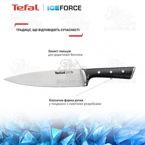 Набір ножів Ice Force Tefal ідеально підходить для щоденного домашнього використання. Лезо різко охолоджується до -120°C відразу після нагрівання, що дозволяє зробити його міцним, надійним і стійким до утворення корозії.