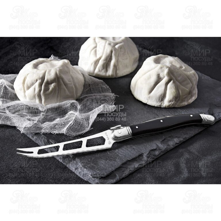 Ніж для сиру серії Premium від компанії Laguiole Style de Vie має 3 великі отвори на лезі. Завдяки цьому ніж ідеально підходить для м'яких сирів. Лезо зазубрене і має два вістря, що дозволяє легко нарізати та подавати сир.