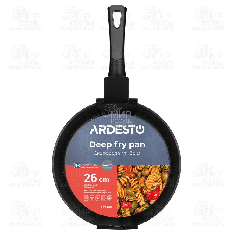 Глибока пательня Ardesto Gemini Bari виготовлена з кованого алюмінію, який забезпечує швидке та рівномірне нагрівання. Сковорода покрита двома шарами протипригарного покриття PPG XYLAN PLUS, тому при приготуванні можна використовувати менше олії та дотримуватися здорового харчування. Посуд міцний і не містить у складі шкідливих для здоров'я речовин. Оснащена сковорода ергономічною рукояткою з бакеліту +SILICONE. Не можна мити в посудомийній машині.