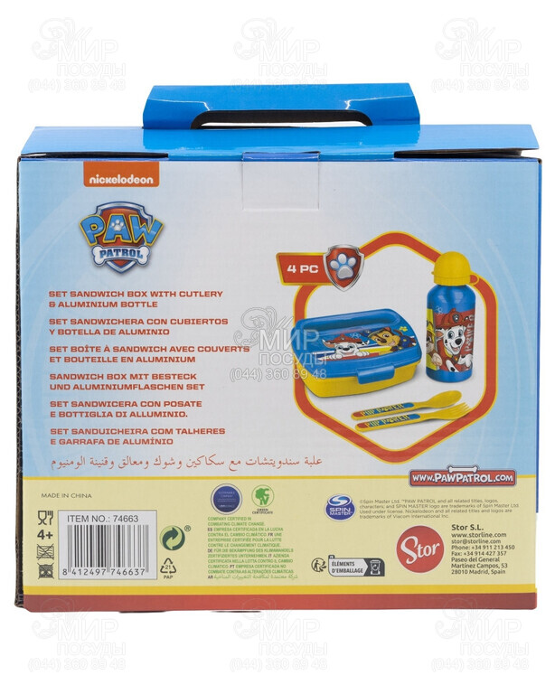 Світ посуду - Кухонний посуд - Ємності для продуктів - Ланч-бокси - Ланч-бокс із пляшкою для води та столовими приборами Paw Patrol 22,7х20,5х7,2см 74663