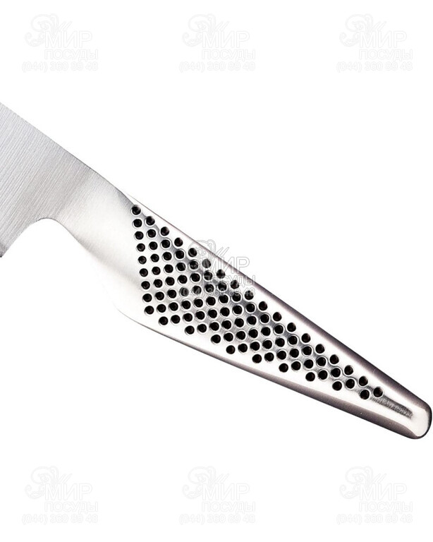 Ніж від японського виробника Global підходить для нарізки овочів, риби і м'яса, а також для подрібнення зелені. Лезо має оптимальну довжину і загострений кінчик, що в поєднанні з повнорозмірною ручкою означає, що ніж також дозволяє виконувати дуже точні завдання.