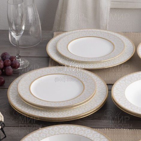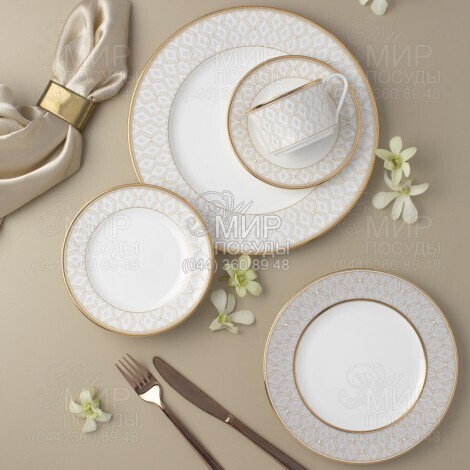 Тарілка Noble Pearl від японського виробника Noritake виготовлена ​​з кісткового фарфору. Зіставлення елементів дизайну створює відчуття елегантності та драматичної атмосфери.
