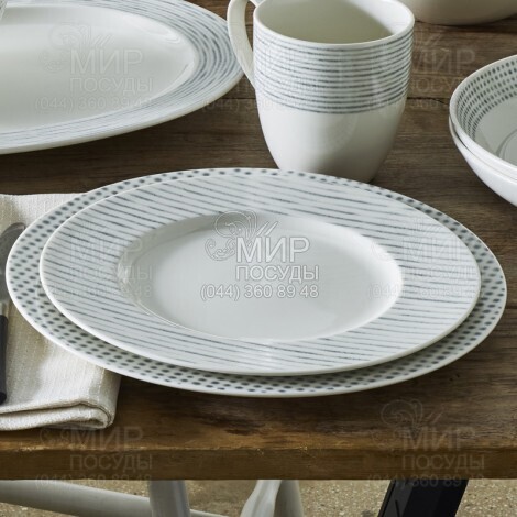 Різноманітні сірі та білі мотиви прикрашають посуд серії Grey Hammock від японського виробника Noritake, яка виготовлена з порцеляни. На кожному виробі є точки, смуги або інші візерунки по-різному, що надає цій унікальній колекції свіжого і сучасного вигляду.