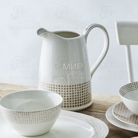 Різноманітні коричневі та білі мотиви прикрашають посуд серії Khaki Hammock від японського виробника Noritake, яка виготовлена з порцеляни. На кожному виробі є точки, смуги або інші візерунки по-різному, що надає цій унікальній колекції свіжого і сучасного вигляду.
