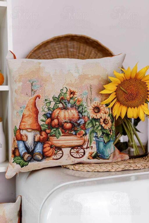 Світ посуду - Домашній інтер'єр - Наволочки - Наволочка декоративна Гарбузові гноми з возиком 45х45см 4823093464636