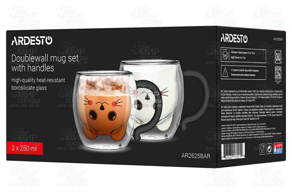 Світ посуду - Питний посуд - Склянки - Склянки з подвійними стінками - Набір чашок з подвійними стінками Animals 250мл AR2625BAR