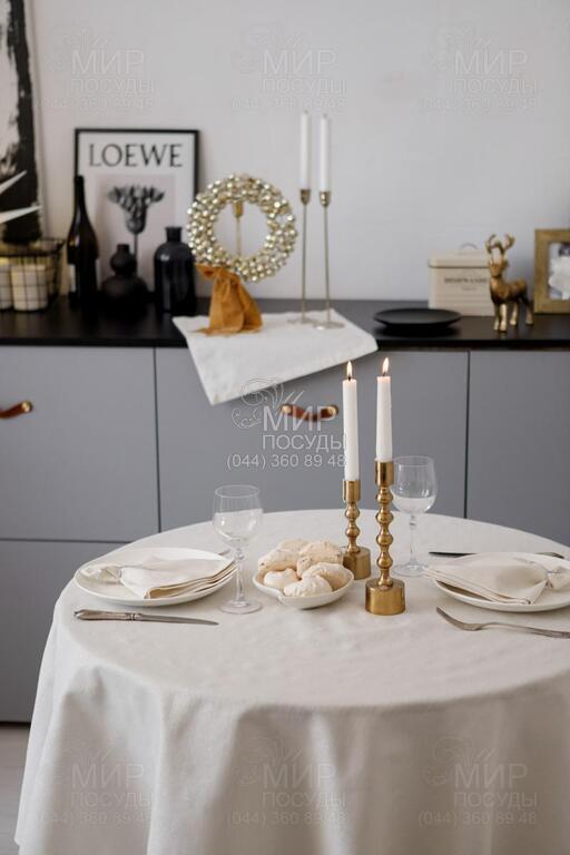 Світ посуду - Домашній інтер'єр - Домашній текстиль - Скатертини - Скатертина з люрексом Перлина -White- 180см 4823093466036