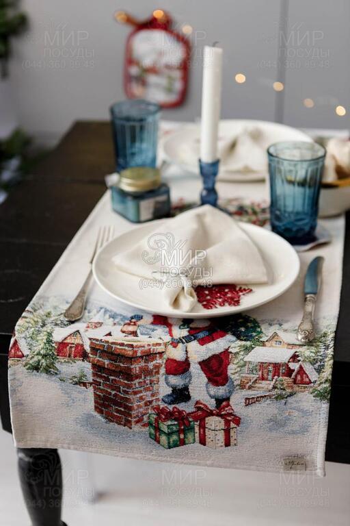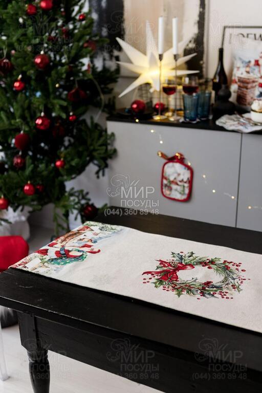 Скатертина з велюром Снігова зима 135х350см 4823093464995