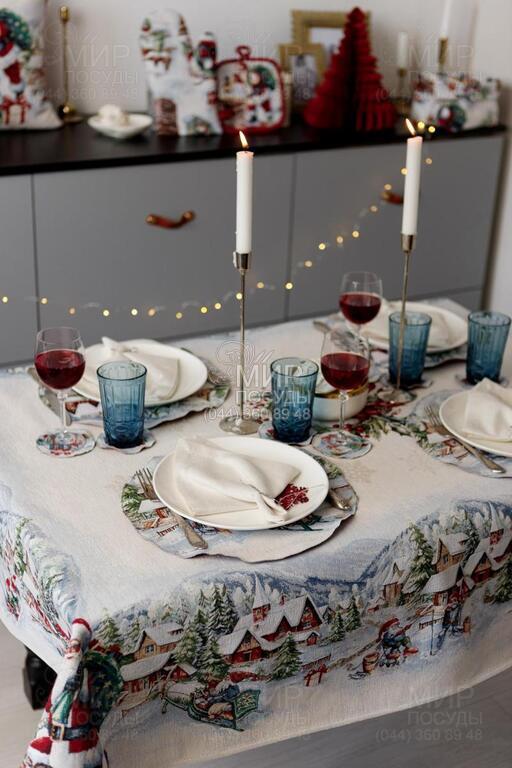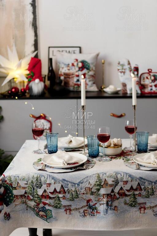 Світ посуду - Домашній інтер'єр - Домашній текстиль - Скатертини - Скатертина з велюром Снігова зима 135х260см 4823093464971
