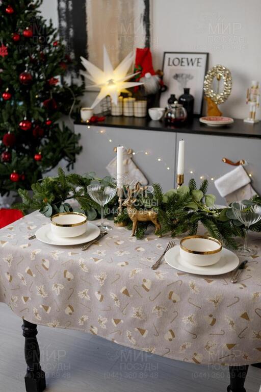 Світ посуду - Домашній інтер'єр - Домашній текстиль - Скатертини - Скатертина з люрексом Шапочки на бежевому 136х136см 4823093465732