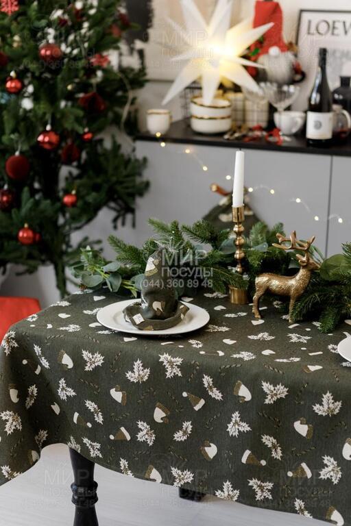 Світ посуду - Домашній інтер'єр - Домашній текстиль - Скатертини - Скатертина з люрексом Шапочки на зеленому 136х220см 4823093465787