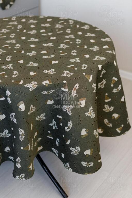 Світ посуду - Домашній інтер'єр - Домашній текстиль - Скатертини - Скатертина з люрексом Шапочки на зеленому 180см 4823093465886