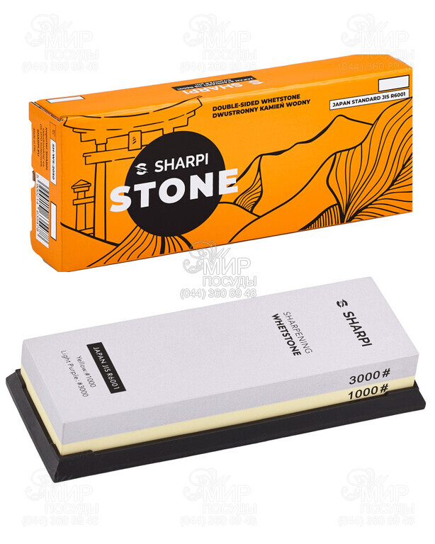 Точильний камінь Sharpi має дві заточувальні поверхні із зернистістю (1000) для заточування та дуже дрібною зернистістю (3000) для створення гладкої та тонкої кромки. Підвищена жорсткість каменю відповідно до японського стандарту JIS R6001 забезпечує швидке заточування. Підходить для кухонних ножів, кишенькових ножів, мисливських ножів та ножиць, садових інструментів, сокир, мачете, бритв, стамесок та інших сталевих інструментів.