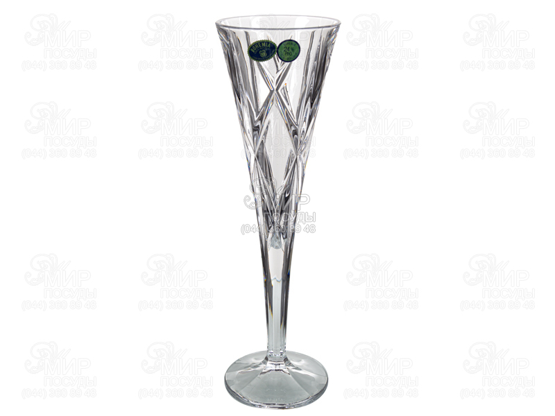 Набір келихів для шампанського York від чеського виробника Crystalite Bohemia виготовлений із кришталю. Ємності мають фігурні стінки і ущільнене дно. Завдяки неординарній формі вироби виблискуватимуть яскравими відблисками.