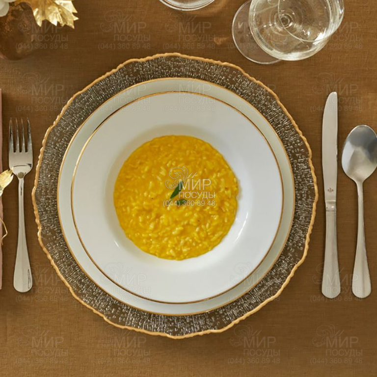 Колекція Maesta від італійського виробника La Porcellana Bianca це справжній витвір мистецтва, в якому поєднуються традиції та сучасні тенденції дизайну. Кожен виріб колекції виконаний із білої сатинової порцеляни, яка відрізняється неймовірною гладкістю та напівпрозорим блиском, створюючи ефект невагомості та легкості. Біла порцеляна ідеально поєднується з елементами золотого декору, виконаного вручну, надаючи посуду вишуканий, майже урочистий вигляд. Золоті упори прикрашають краю тарілок, чашок та блюд, створюючи відчуття царської розкоші.