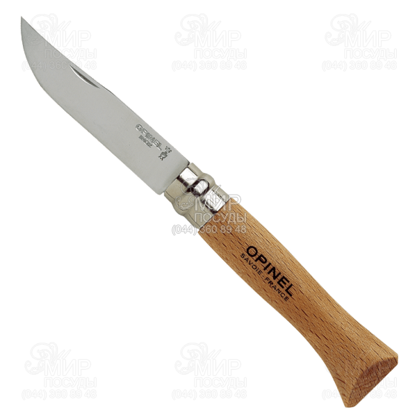 Всі ножі, створені всесвітньо відомою компанією Opinel, відрізняються від схожих складних і кишенькових ножів ручкою виконаною з бука або палісандрового дерева і високоякісною високою сталлю шведського виробництва, з якої виконаний клинок у формі турецького ятагана. Клинок у даного інструменту заточений класичним прямим заточенням і відмінно підійде як для домашнього використання, так і зможе прийти на допомогу під час туристичного походу або звичайного пікніка. Пальці власника будуть надійно захищені від випадкового складання клинка механізмом Virobloc, який винайшов сам Марсель Опінель у 1955 році.