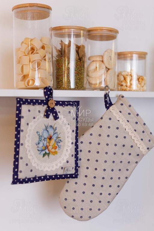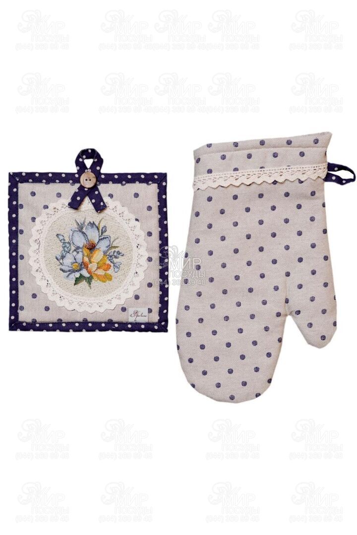 Світ посуду - Кухонні аксесуари - Рукавиці, прихватки, фартухи - Набір прихваток Vintage Синій горох 4823093470040