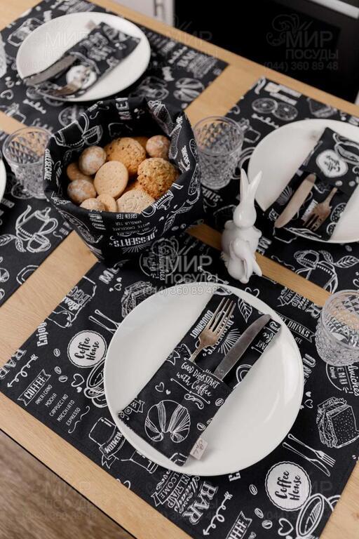Світ посуду - Домашній інтер'єр - Килимки та серветки для сервірування - Сервірувальні серветки - Серветка сервірувальна Breakfast black 35х45см 4823093470255