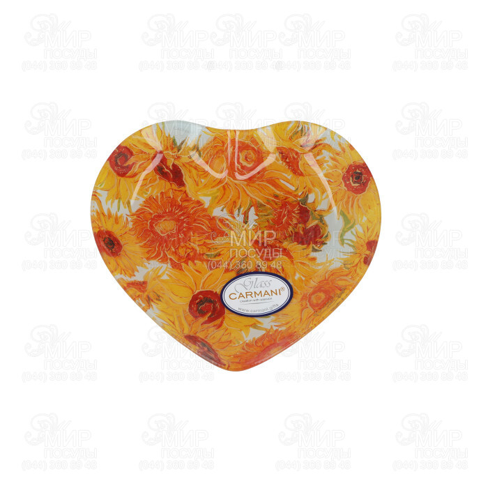 Ємність виконана з міцного скла і поєднує в собі вишуканий дизайн та функціональність. Має форму серця, прикрашена чудовою репродукцією картини відомого художника Ван Гога. Таке скляне блюдо припаде до смаку і колекціонерам і тим, хто віддає перевагу витонченості та вишуканості.