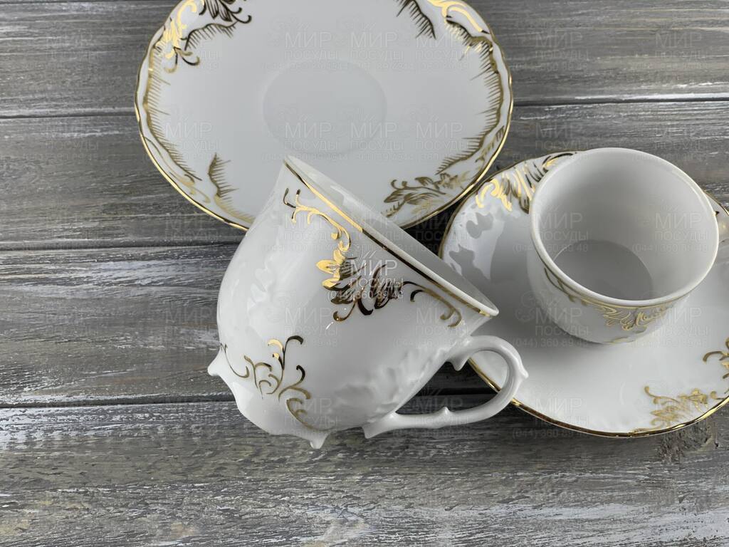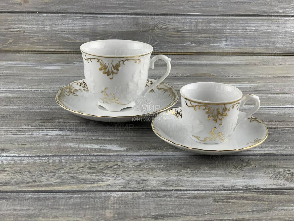 Світ посуду - Столовий посуд - Чашки - Набори чайних чашок - Набір чашок для чая з блюдцями Rococo Золоті вензелі 250мл