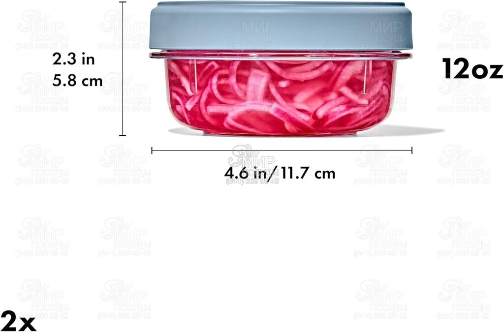 Контейнери Good Grips від OXO ідеально підходять для зберігання залишків їжі або для того, щоб брати її з собою в дорогу. Вони оснащені герметичним ущільненням, що гарантує герметичність, і мають зручну конструкцію, що дозволяє заощаджувати місце в шафах, холодильнику або у сумці. Контейнери стійкі до появи плям та деформації.